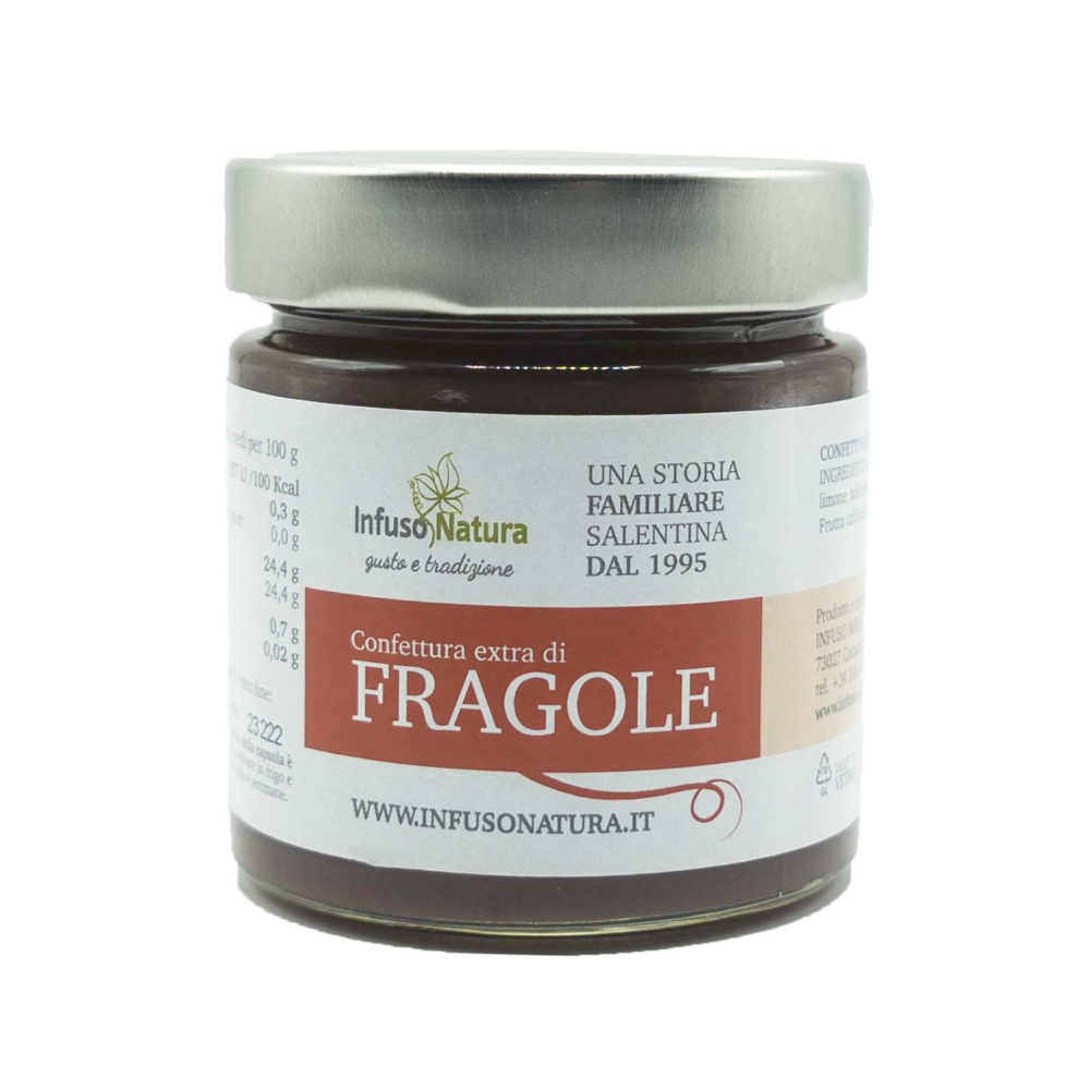Riporre il profumo e la freschezza delle fragole di stagione in un vasetto è quello che abbiamo realizzato. La confettura di fragole è ottima su fette biscottate, sul pane tostato, come farcitura per sfoglie,torte e crostate e come topping per dolci al cucchiaio.