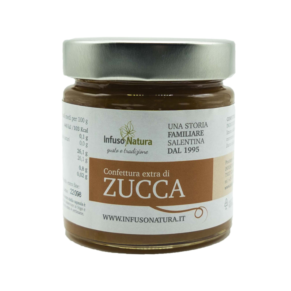 Un abbraccio caldo e vellutato che sa di autunno. La nostra confettura extra di zucca è preparata artigianalmente con polpa fresca e dolce, cotta lentamente per preservarne il gusto naturale e arricchita con un tocco di limone che dona equilibrio e freschezza.