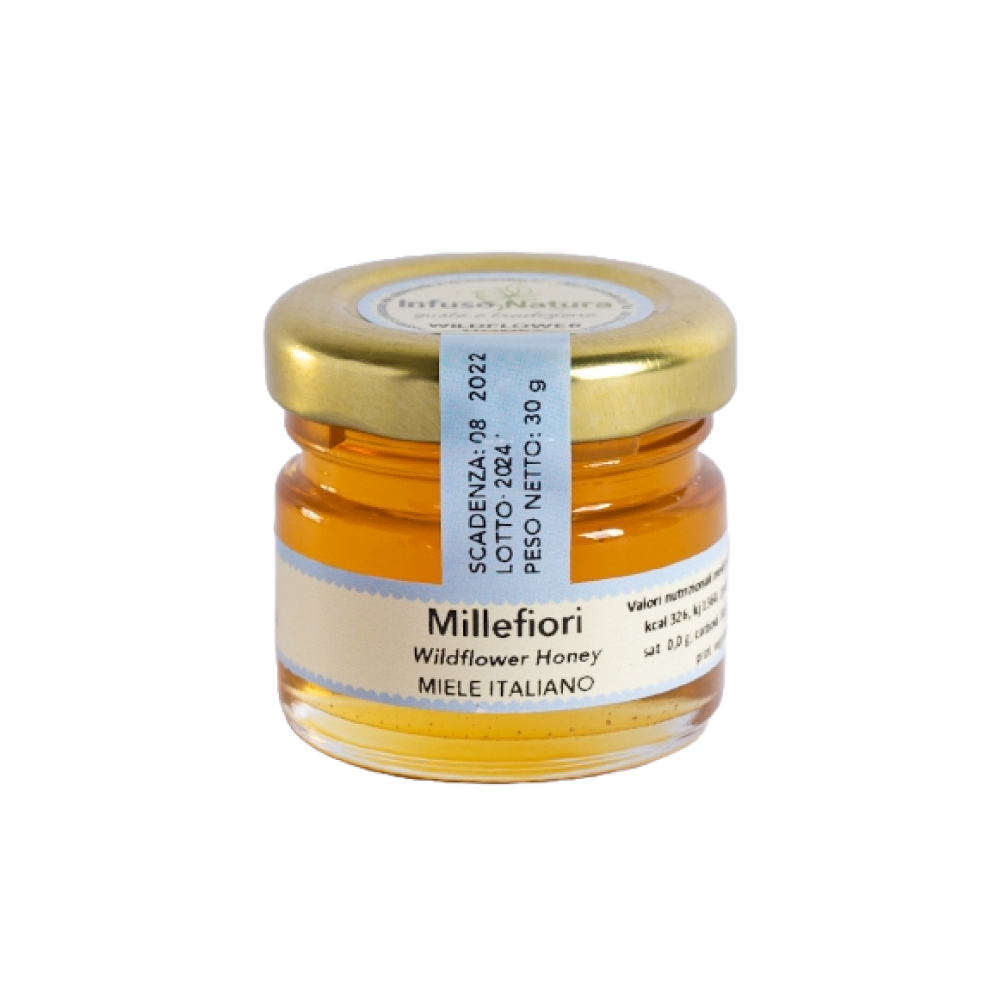 Un concentrato di natura in formato monodose. Il nostro Miele Millefiori Italiano è prodotto artigianalmente da nettari raccolti su una vasta varietà di fiori spontanei, che donano al miele un profilo aromatico ricco e sfaccettato. Ogni vasetto racchiude il gusto autentico del territorio, con note floreali delicate e una dolcezza equilibrata.
